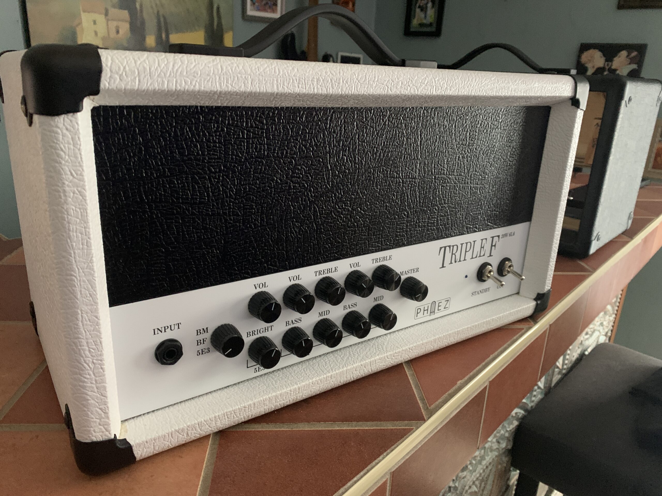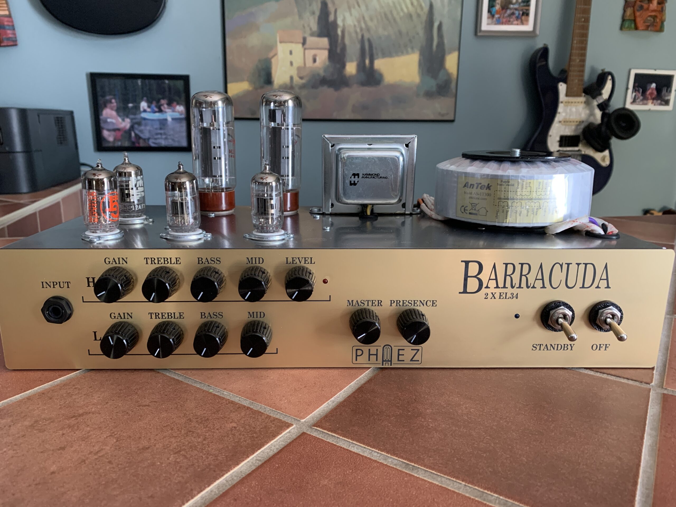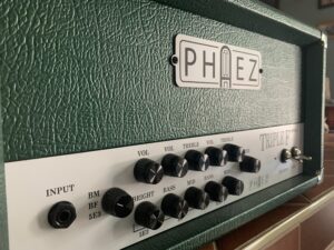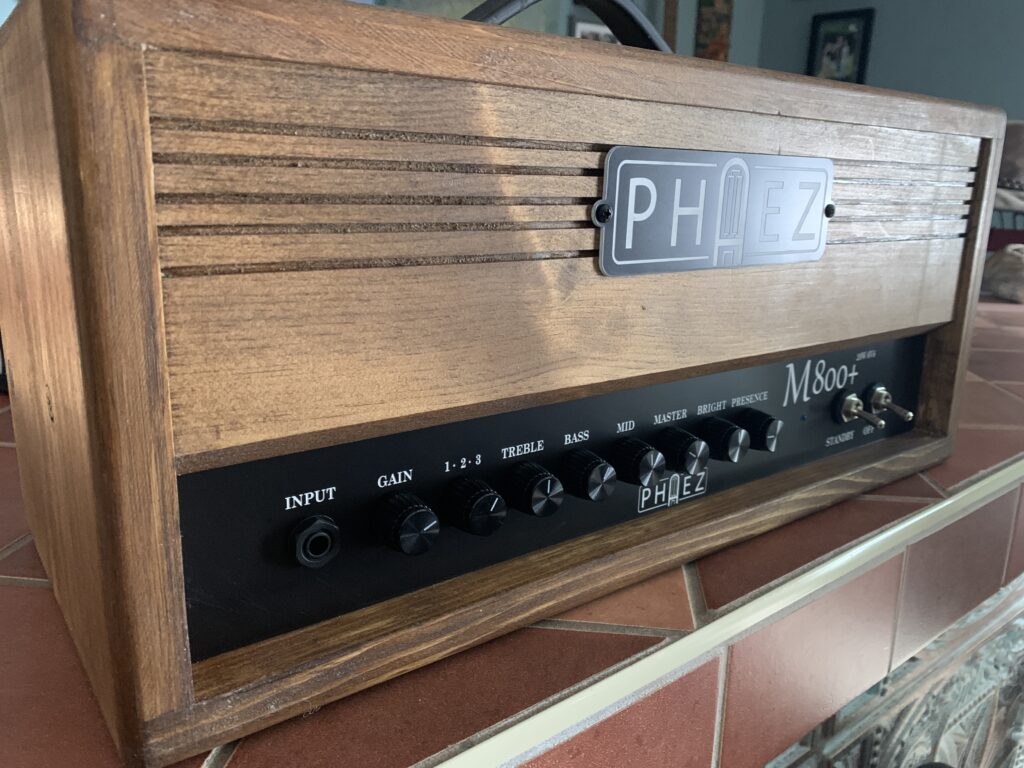 1 input, 2 channels, loop. F channel is my Corona/Blackface tried and true bouncy clean channel. M channel is based on the Crocodile and it is fabulous! Channels complement each other nicely. State of the art. 25W from a pair of EL34’s.