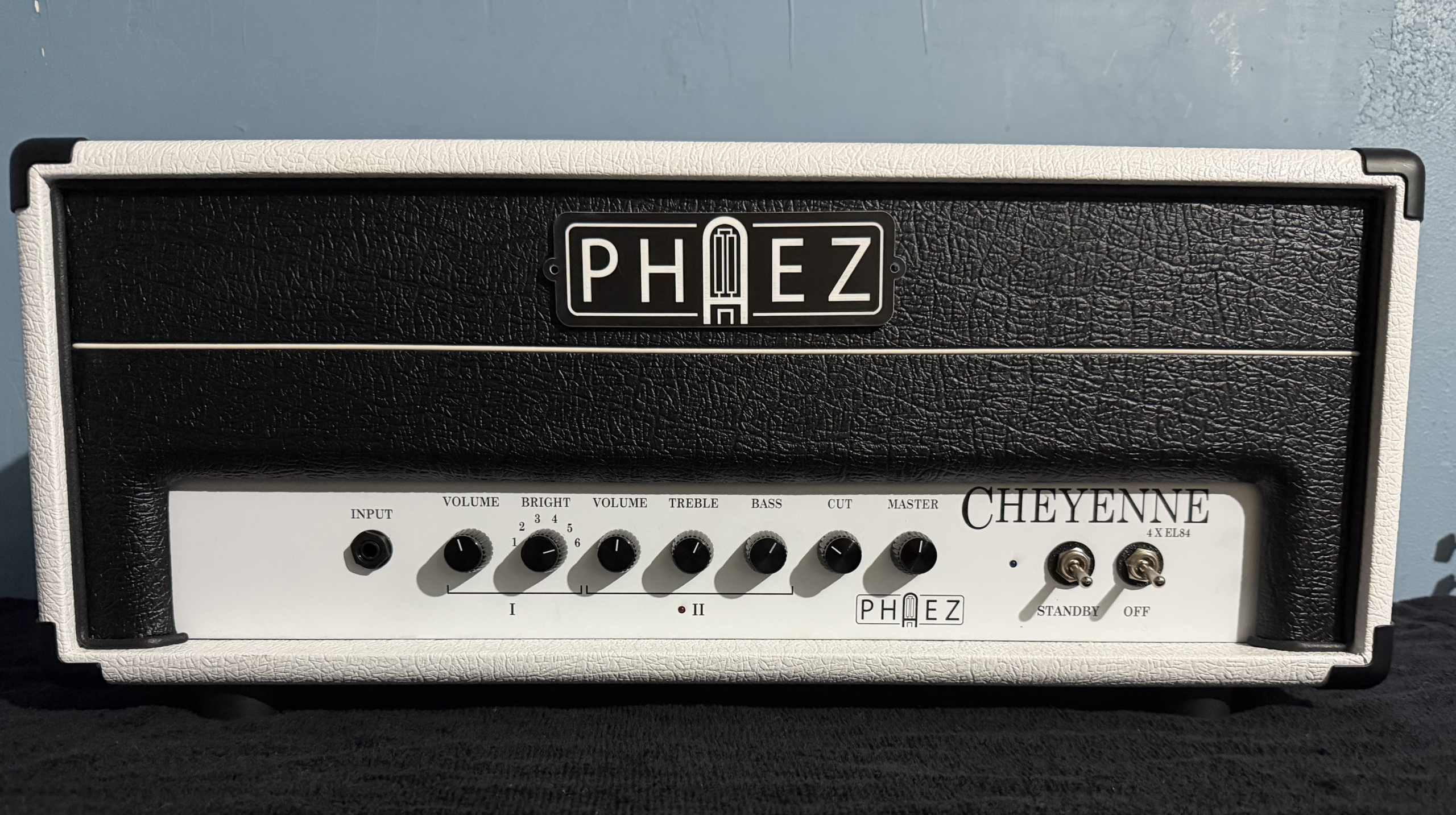 The Cheyenne is based on a Matchless/Vox circuit. 4XEL84 for about 35W. EF86 pentode channel and top boost treble bass channel. The Cheyenne has a loop and is a channel switcher. The Cheyenne will be supplied with a Sourmash cab, similar to the pic but you have your color choice. US$1200 (less than 1/3 of the Matchless!)