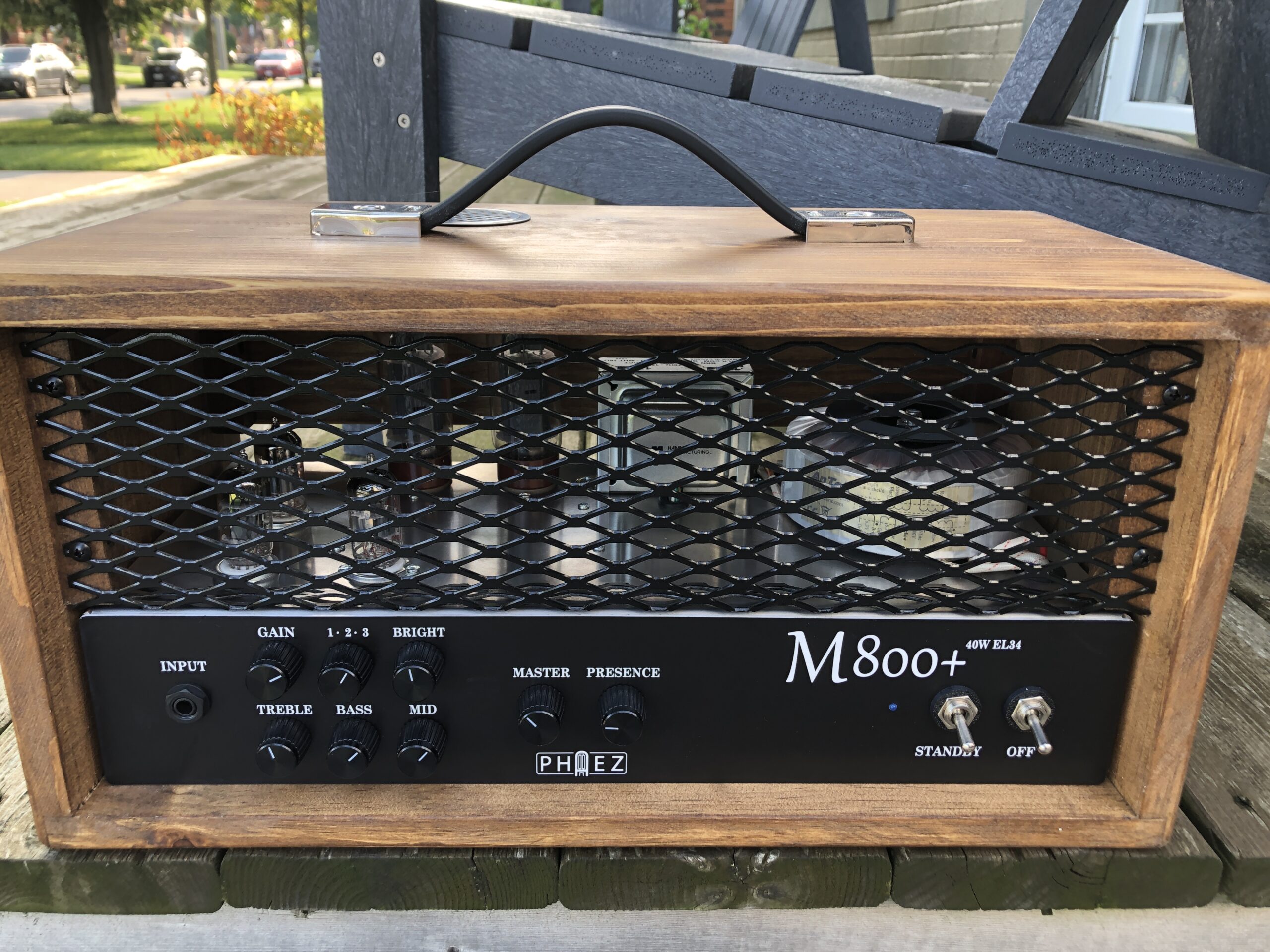 But I can build another.  25W from a pair of EL34’s.  US$799  plus shipping.  Superb clean tones with the gains back and master up.  The crunch is awesome in mid gain area, and wonderful modded M tones with gains up.  We have a Friedman Small Box Custom here but would choose this M800+.  This one has a loop and a post phase inverter master volume in addition to the regular master volume.  8 and 16 ohm speaker connections.  EL34’s will last forever as they are run very conservatively.